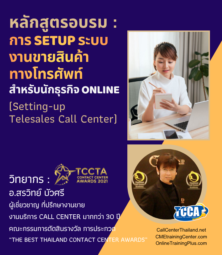 สนใจอบรมติดต่อได้ที่ : คุณไก่ หมายเลขโทรศัพท์ : 02-589-3001 , 086-200-1122 E-mail : info@callcenterthailand.net