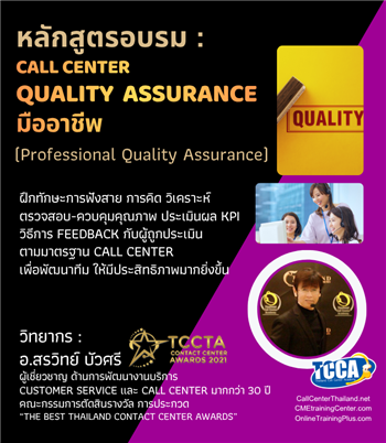 หลักสูตรสำหรับ QA Call Center, Supervisor เพื่อพีฒนาทักษะการฟังสาย การวิเคราะห์น้ำเสียงในการบริการลูกค้าของเจ้าหน้าที่ การควบคุมคุณภาพ ให้ได้มาตรฐานการบริการ และการให้ Feedback อย่างมืออาชีพ