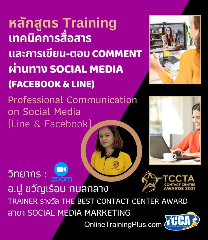 สอนโดย : อ.ปู ขวัญเรือน กมลกลาง - วิทยากร ที่ได้รับรองการสอนจากสถาบัน Thailand Call Center Academy Trainer ให้แก่ Admin Page อาทิเช่น KFC และ อีกมากกว่า 25 Page รางวัล The Best Contact Center Award สาขา Social Media Marketing (สมาคมการค้า ธุรกิจศูนย์บริการทางโทรศัพท์ไทย)